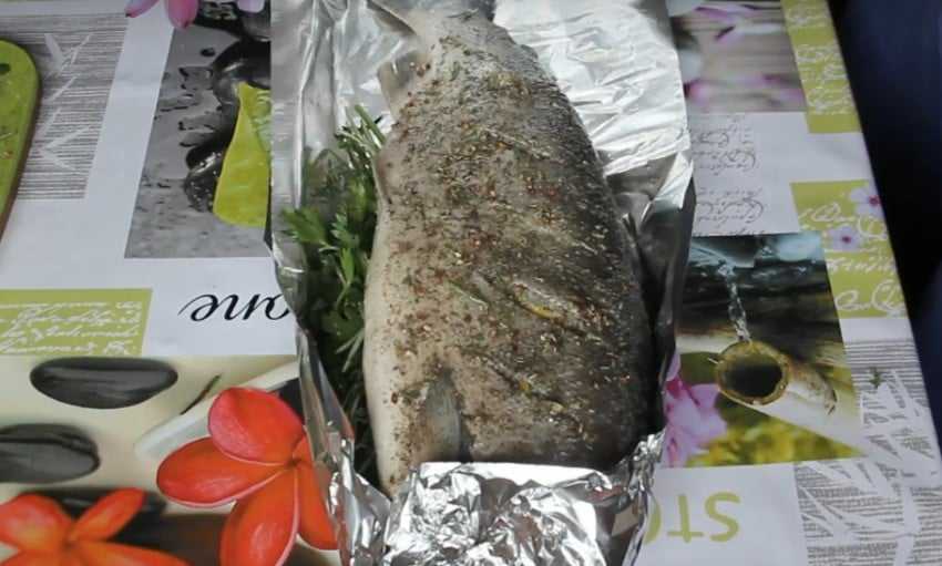 Шаг 6. Заворачиваем рыбу фольгой и запекаем сначала 30 минут при температуре 160 градусов. После фольгу раскрываем и даем рыбе подрумяниться в течение 10 минут при температуре 200 градусов.