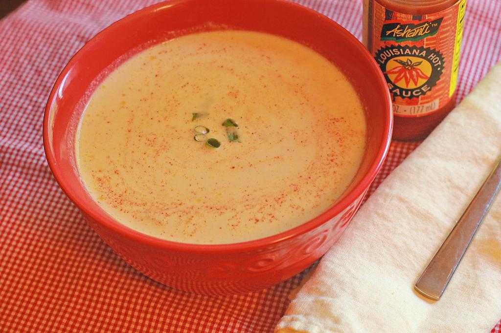 Ингредиенты: 1 банка консервированных крабов, 1 стакан консервированной кукурузы, 1 ст.л. кукурузной муки, 1 стакан молока, 4 стакана мясного бульона, соль, соевый соус, чили.
