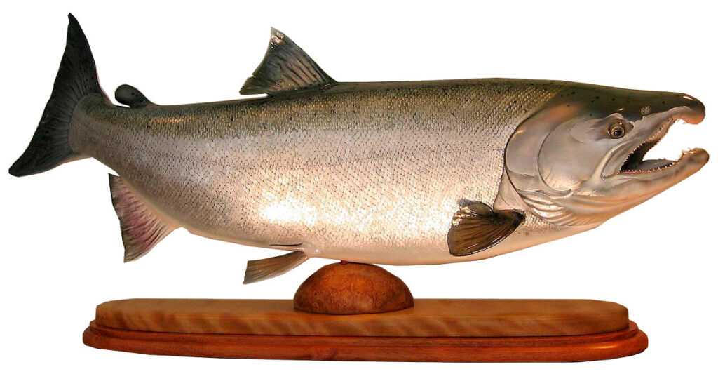 Наиболее крупная рыба среди тихоокеанских лососей. Средняя длина — 90 см. Чавыча имеет также названия — князь лососей, королевский лосось. На Камчатке популяция королевского лосося практически исчезла из-за браконьерства, поэтому вылов этой рыбы на побережье Камчатки запрещен или ограничен. На нерест идет в реки, может проходить тысячи км. Мясо чавычи очень ценится по вкусовым качествам. Цвет мяса от розового до красного.