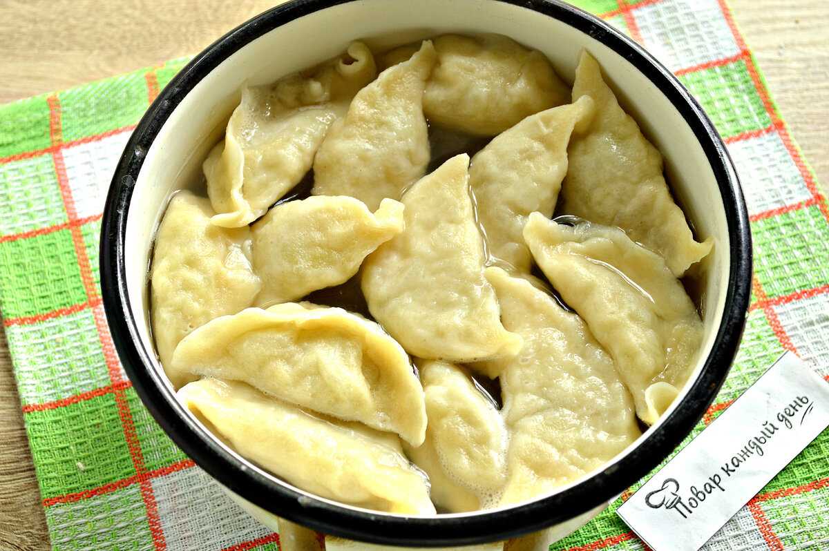 Наши вареники с капустной начинкой осталось только отварить в присоленной воде.