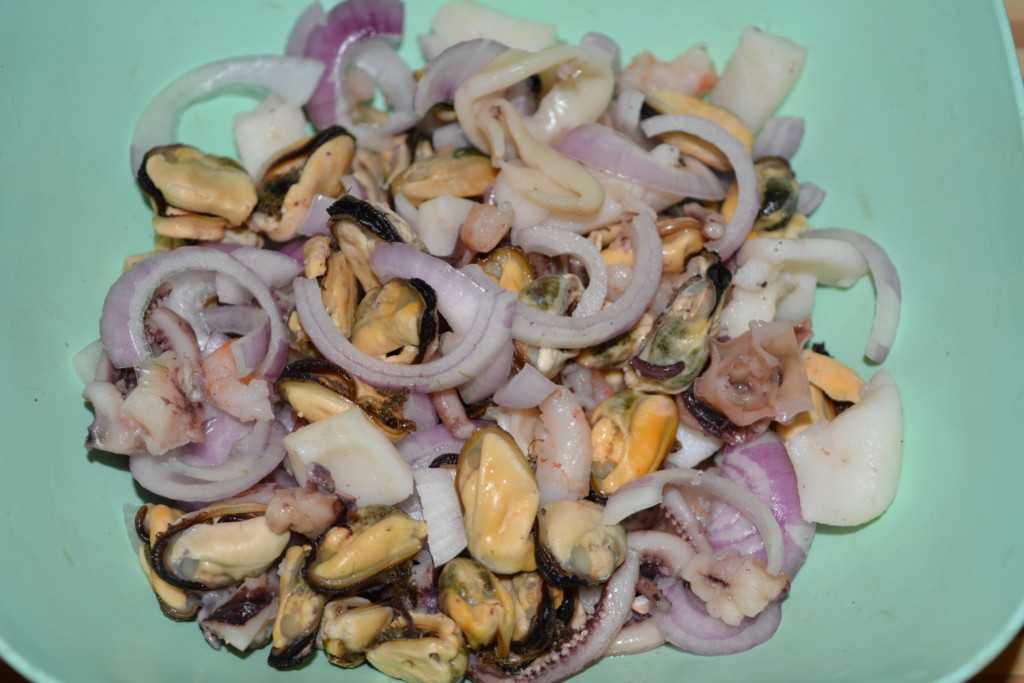 - Морепродукты по вкусу (креветки, кальмары, мидии);
