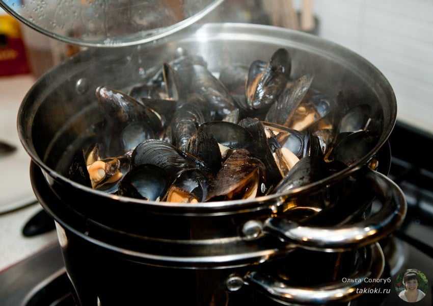 И здесь вот, на что хочу обратить ваше внимание, — время тепловой обработки. Варить мидии следует не больше 3-4 минут в подсоленной воде