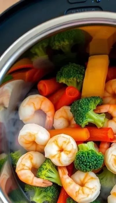 1. Креветки с овощами: Идеальный вариант для быстрого ужина. Вам понадобится 500 г креветок, 1 болгарский перец, 1 луковица, 200 г брокколи, 2 зубчика чеснока, соевый соус, специи по вкусу. Обжарьте овощи в режиме “Жарка”, добавьте креветки и соевый соус, готовьте 15 минут.