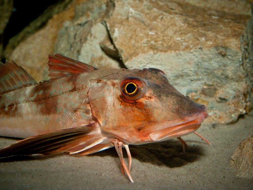 Когда барабулька теряется осторожность, поглощенная ковырянием в песке, морской петух отталкивается от дна своими ногами и в один прыжок настигает добычу