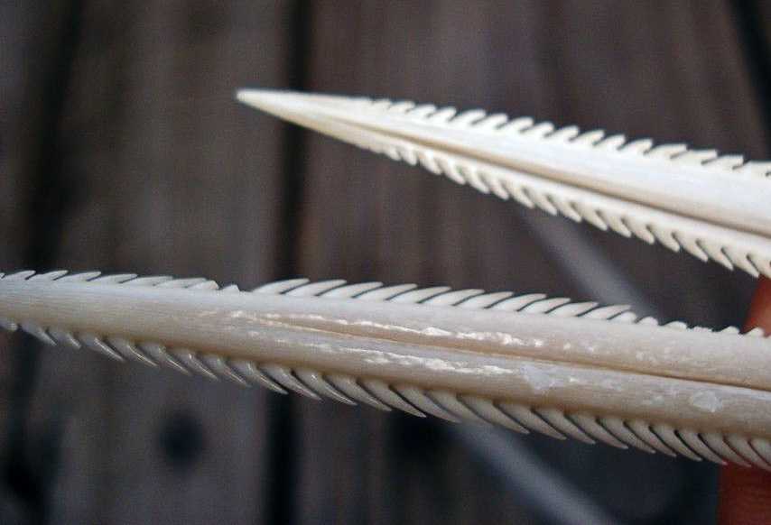 Хвост ската заканчивается острым, сплющенных по бокам шипом, который может достигать длины до 37 см. Шип по краям имеет зазубрины. Обороняясь, скат использует хвост в качестве хлыста и наносит жертве удары, разрывая шипом плоть. Сила удара хвоста ската такова, что он может пробить шипом обувь из толстой кожи или одежду человека. Надо сказать в защиту скатов, что они никогда не нападают сами, а только обороняются. Поэтому если их не трогать или случайно на них не наступить, они не причинят вреда человеку.