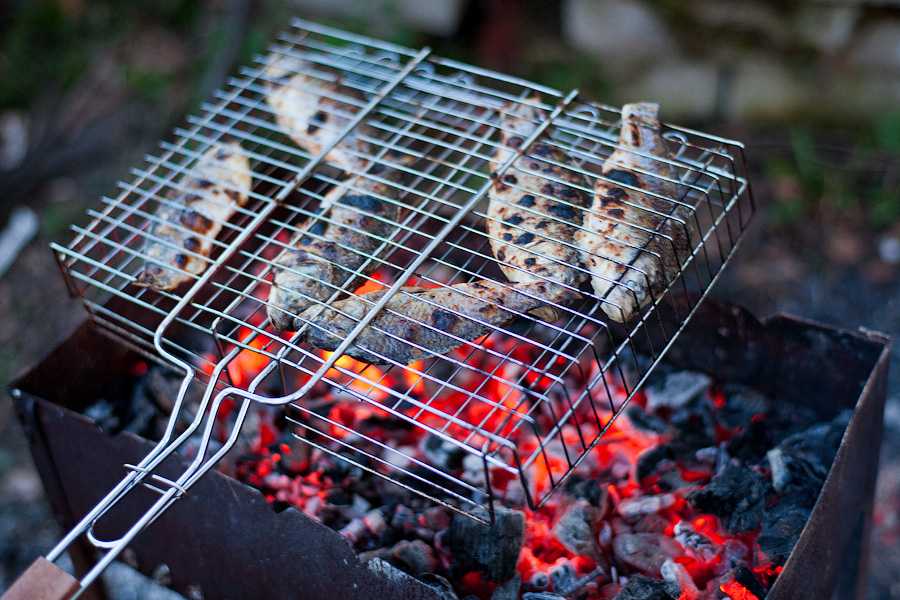 Также маслом нужно тщательно смазать решетку (обязательно чистую!). В продаже, кстати, есть и специальные решетки, которые фиксируют рыбу. И не забывай ворошить угли во время готовки для поддержания высокой температуры.