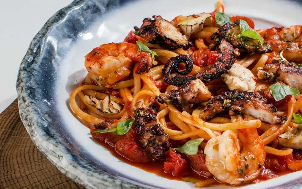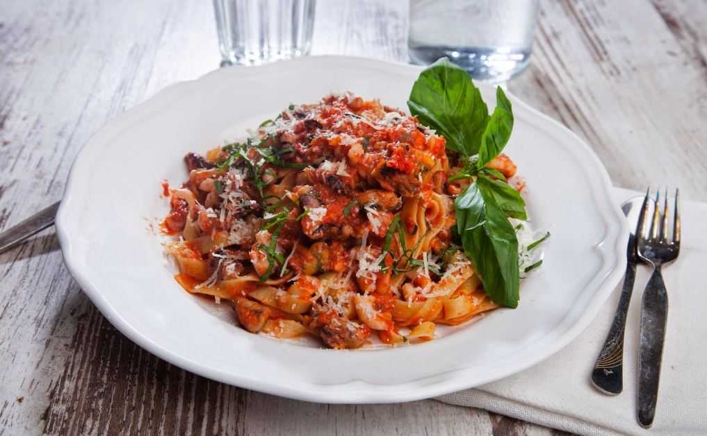- вместо жирного бекона или грудинки, калорийной красной рыбы гораздо полезнее положить в пасту морепродукты;