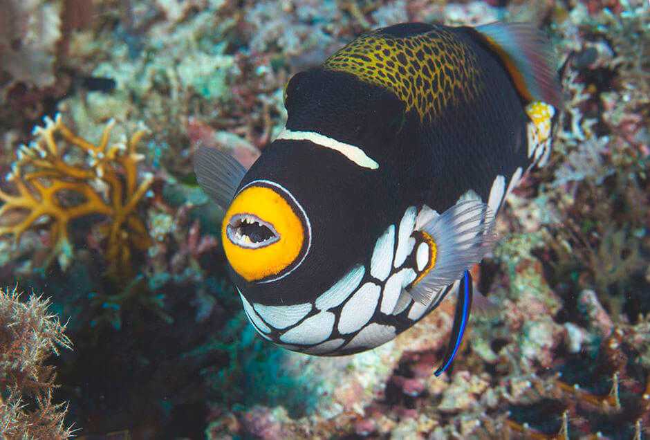 Необычайно яркая окраска размывает его очертания тела на фоне коралловых джунглей, поэтому разглядеть это существо в естественных условиях обитания очень трудно.