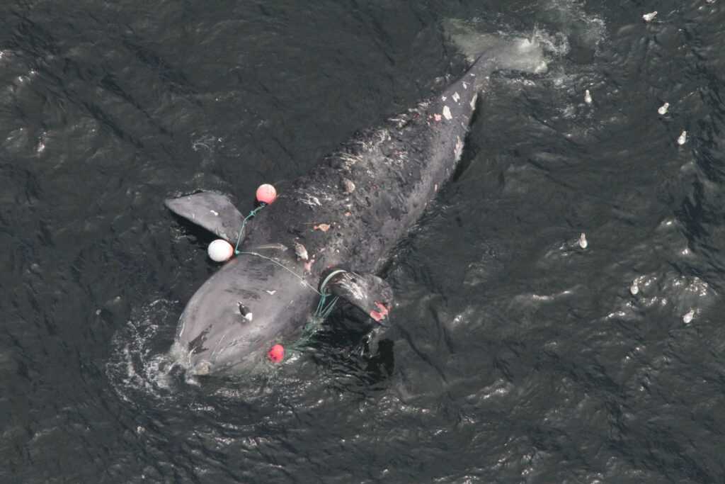Самка северного гладкого кита, погибшая в сетях у берегов Канады. Фото от Питера Дули с сайта eco-cosm.com