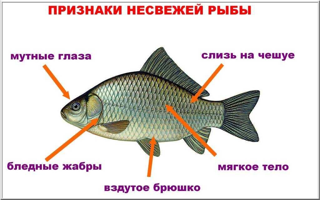 - Мягкое тело, отсутствие упругости. При надавливании на поверхность рыбы, остаётся след от пальца.