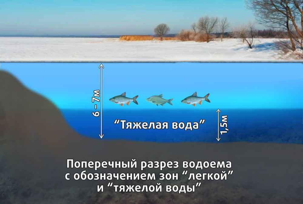 Как известно из физики, плотность воды сильно зависит от её температуры. А самой плотной является вода с температурой от 0 до +4 °С. Именно такая вода скапливается в холодную зимнюю пору года на самых глубоких участках водоемов. Рыба, относящаяся к холоднокровным животным, у которых жизненные функции сильно зависят от температуры окружающей воды, похожих мест стремится избегать.