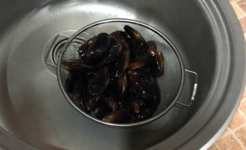 - Для начала необходимо поместить замороженных мидий под струю прохладной воды прямо в упаковке. Размороженные мидии следует достать из упаковки и промыть в холодной воде.