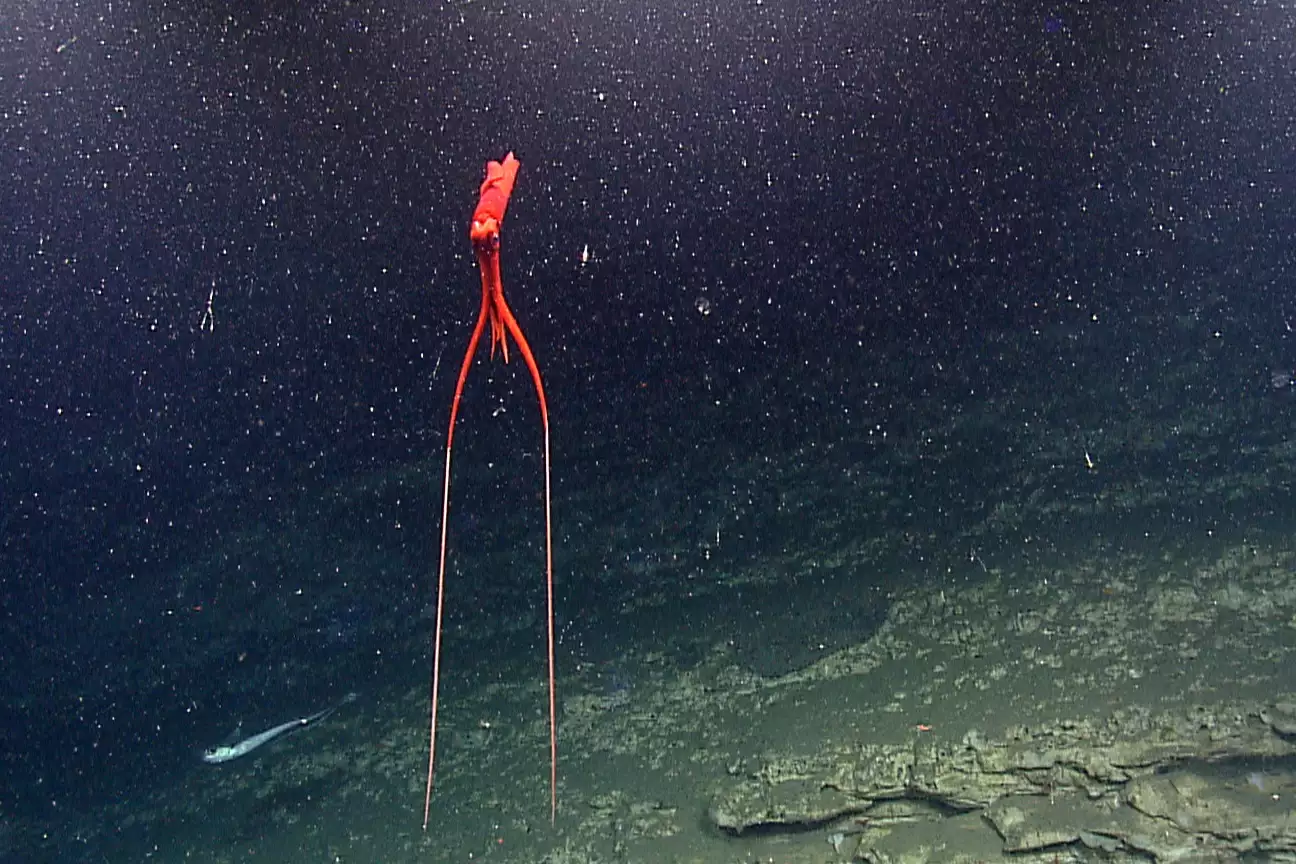 Ученые очень мало знают о кальмаре Mastigoteuthidae, поскольку до тех пор, пока современные глубоководные аппараты не обнаружили его в 1992 году, они могли изучать только мертвых особей. ROV и AUV, появившиеся в 2011 году, позволили получить гораздо более качественные кадры. ()