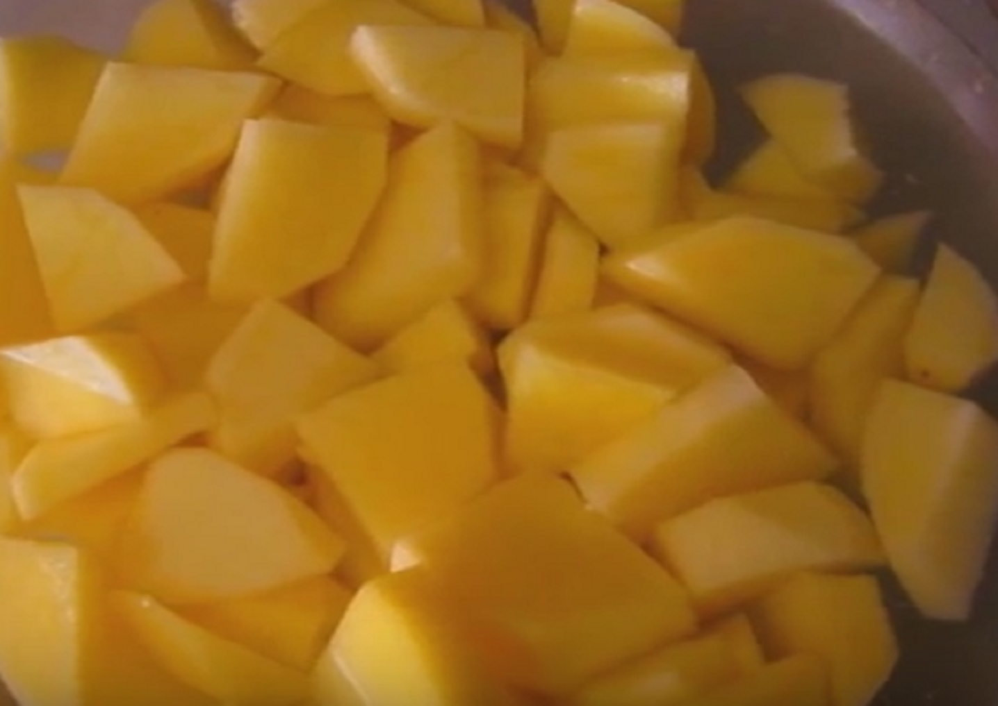 7. В кипящую воду выкладывается картофель и варится 7-10 минут.