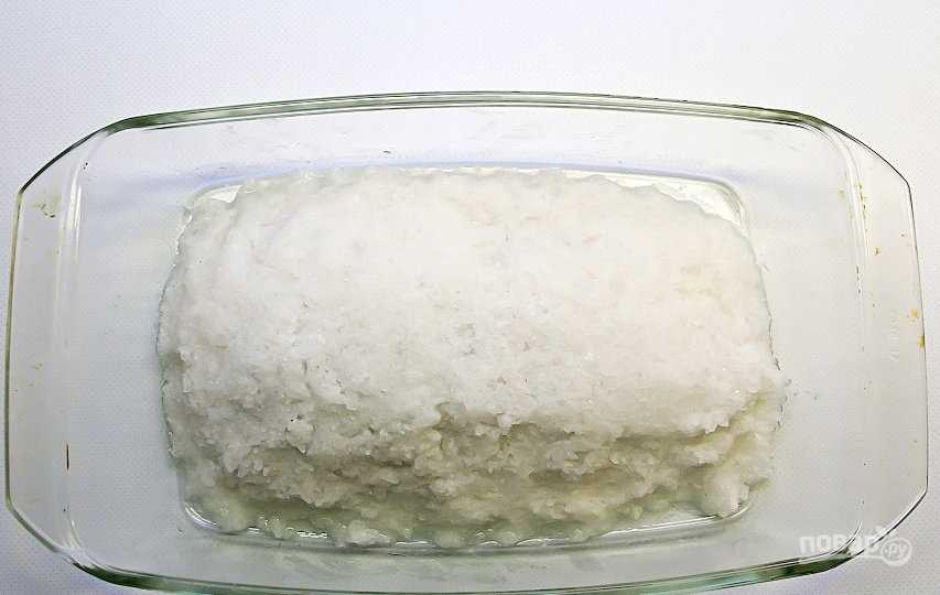 5.Оставшуюся половину смеси выкладываю поверх рыбы и плотно залепляю «саркофаг».