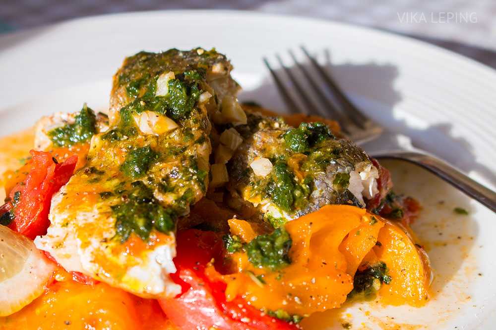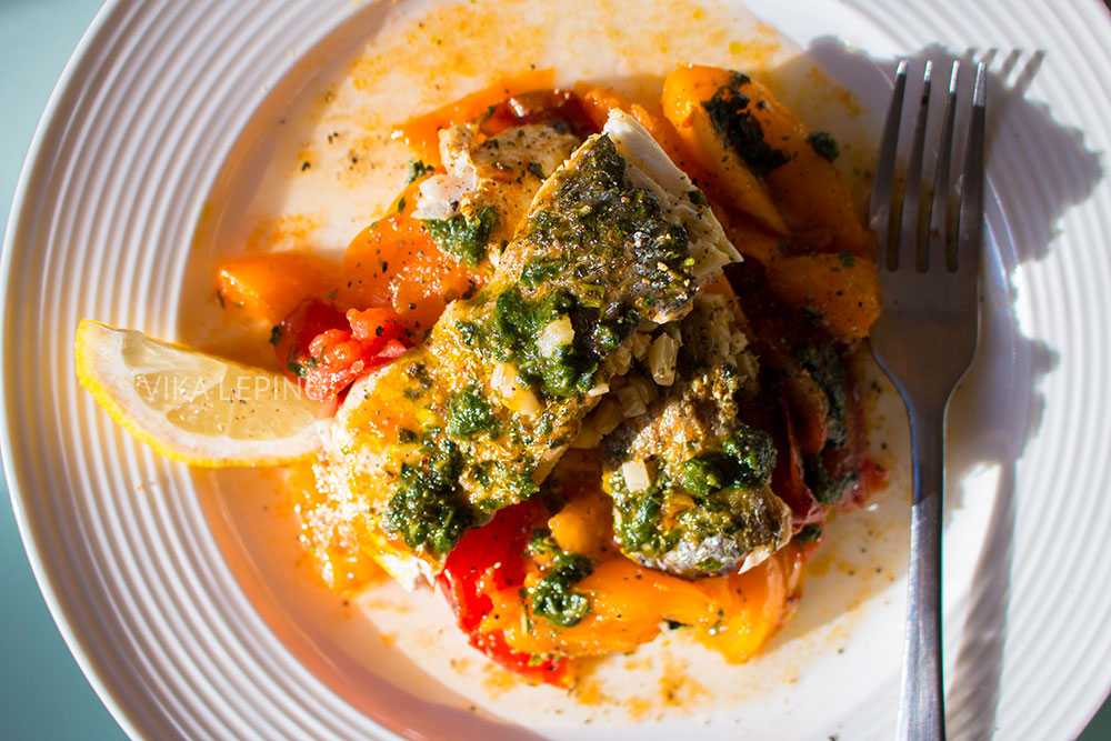 - Когда сибас и овощи зарумянились – ваше блюдо готово.