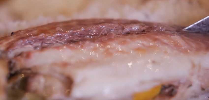 Достаем. Даем остыть в течение 5 минут, а затем разбиваем солевую корочку (можно использовать кухонный молоток) и достаем рыбку.