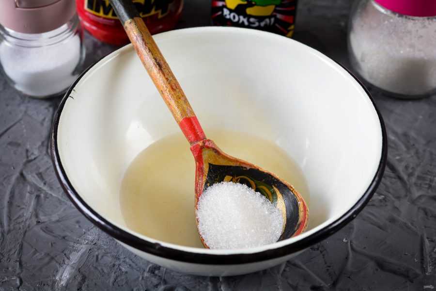 Смешайте в миске или кастрюле рисовый уксус, соль и сахар. Подогрейте, чтобы растворились кристаллы, снимите с огня, не кипятите.