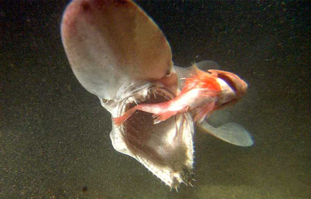 Впервые малоротая макропинна была зарегистрирована в 1939 году, но только в 2004 году она была сфотографирована в живую. С тех пор исследователи из Научно-исследовательского института Monterey Bay Aquarium запечатлели рыбу в действии. Прокрутите вниз, чтобы посмотреть видео.