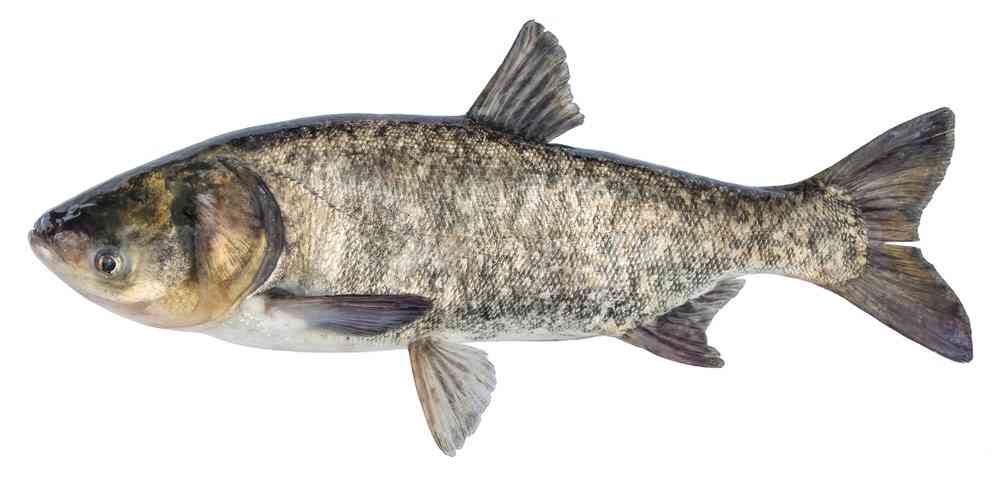 - Пестрый. Обладает удлиненной хвостовой частью, большими плавниками и головой. Взрослые представители имеют черный оттенок чешуи. С двух сторон тела присутствуют пятнышки. У молодых особей чешуя золотистая. Киль на брюшке начинается от брюшных плавников, а заканчивается возле анального пера. Поскольку жабры не срастаются тычинками, рыба может употреблять зоопланктон. Длина тела — 1,5 м, масса может достигать 60 килограммов. Нерестится в конце весны, когда температурный режим воды достигает +18 градусов.