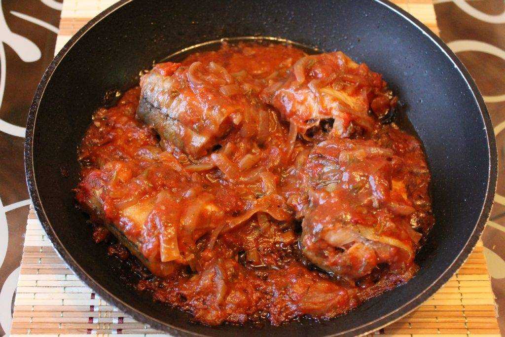 Запомнится необычным эксклюзивным вкусом рецепт селедки в томатном соусе с чесноком, рецепт щуки в томатном соусе с маслинами, рецепт карпа в томатном соусе с миндалем и рецепт трески в томатном соусе с базиликом.