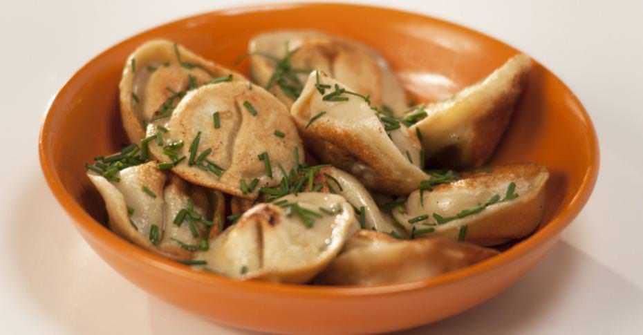 Тесто разрезать на жгуты, каждый делить на кусочки, катать тонкими лепешками диаметром 3-4 см. Сложить заготовки стопкой, прикрыв полотенцем, чтобы не подсыхали. На каждую лепешку класть по 1 ч. л. фарша, краешки присоединить и залепить. Варить в слегка солоноватой воде 3-4 минуты после всплывания, презентовать со щедрой порцией сметаны или луковой поджаркой.