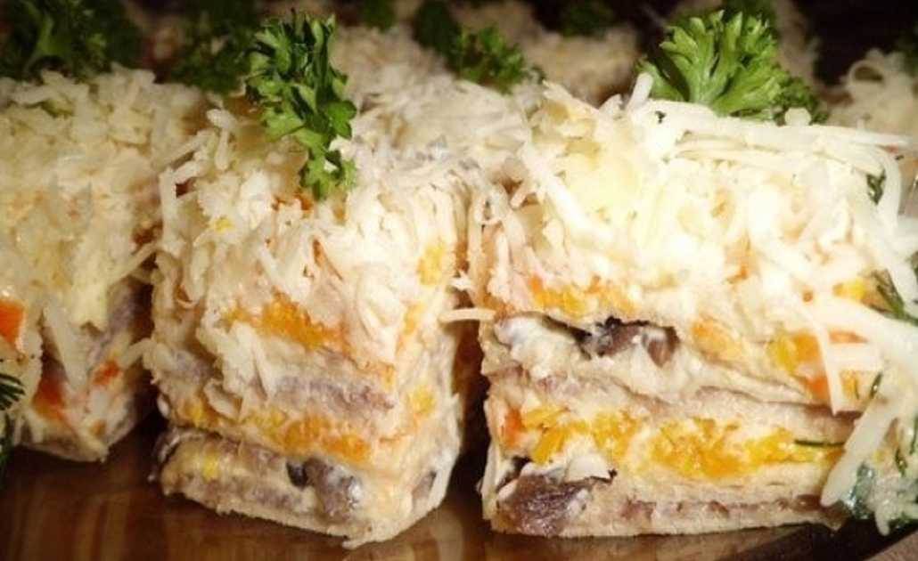 Такой закусочный торт — отличная замена надоевшим бутербродам.