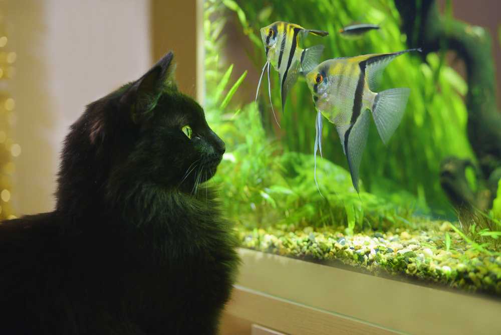 Если кошка обратила внимание на аквариум, то зачастую его жители будут проявлять к ней интерес с не меньшим любопытством. Да, интеллект рыбок не сопоставим с интеллектом наземных домашних животных, но и скучными безмолвными предметами интерьера красивой баночки назвать их трудно