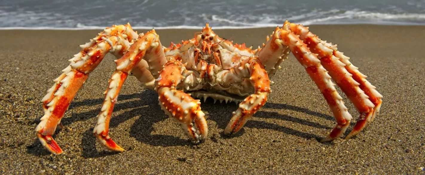 Это самый крупный представитель членистоногих. Ширина его брюшка может достигать 3 метров, а вес доходить до 20 кг. Названием животное обязано размерам и форме своих конечностей. Они длинные и тонкие, как паучьи лапки. Мясо гиганта считается деликатесом и ценится за нежный вкус.