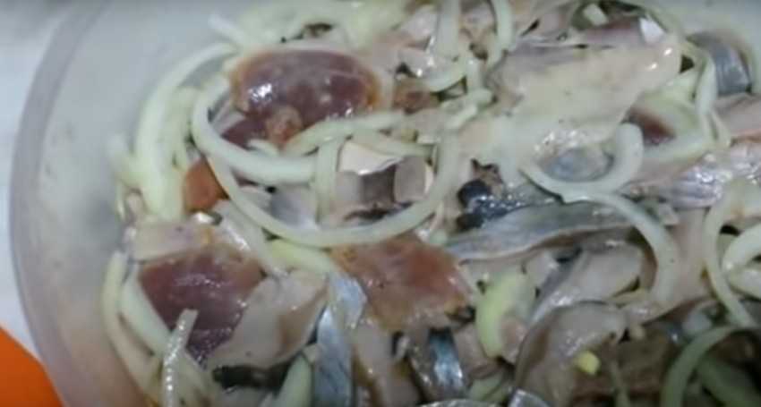 Классический рецепт хе из свежей сельди по-камчатски с уксусом и луком