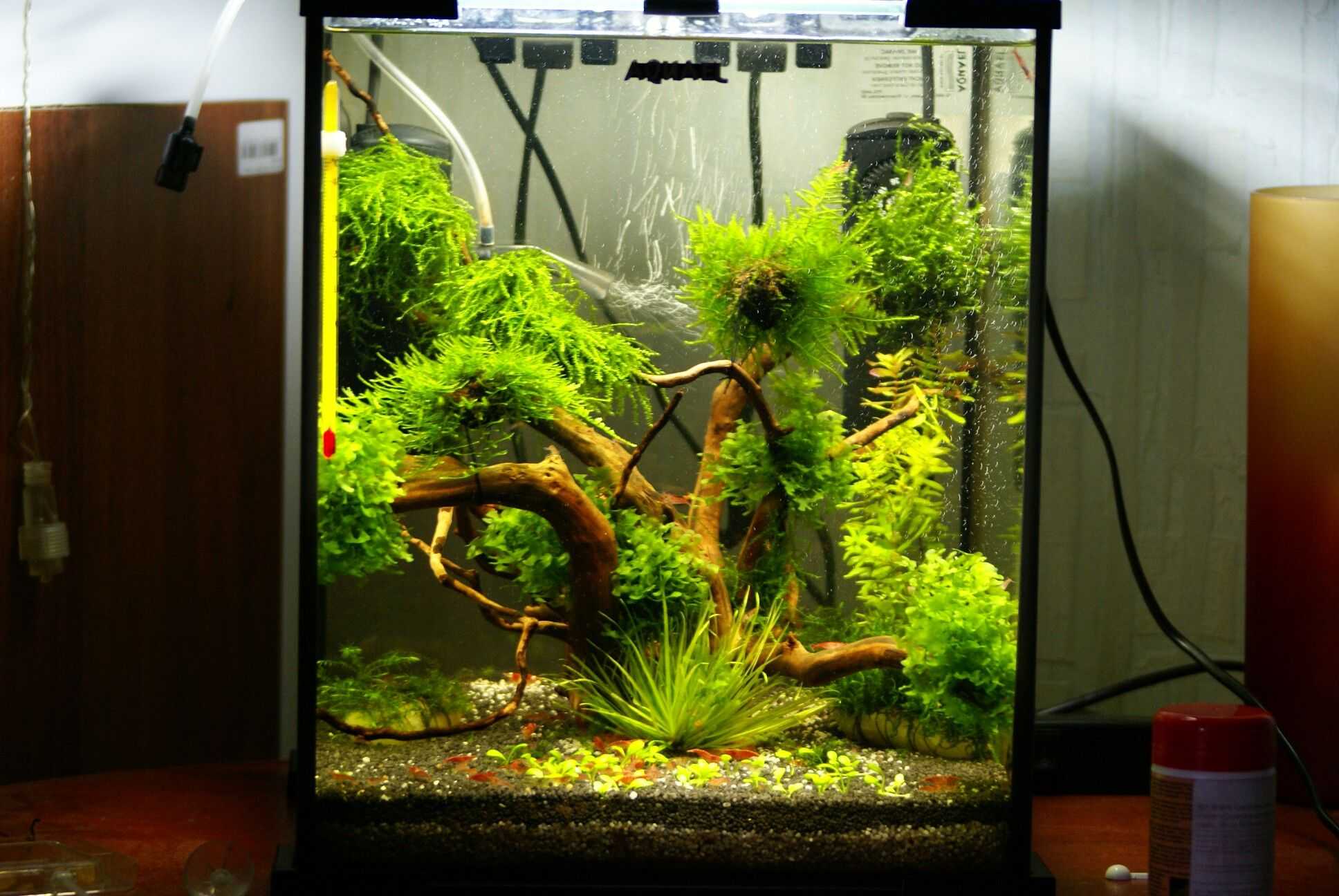 Для обеспечения аквариумным креветкам нормальной жизнедеятельности и поддержания чистоты воды, обязательно нужно установить компрессор и фильтр.