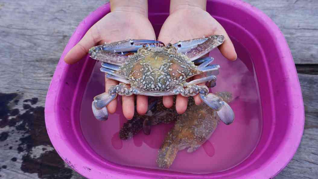 Взрослая особь достигает массы только 400 грамм. За кг отдают в среднем 4000 рублей. Голубой краб идет на салаты и закуски из-за своих небольших размеров.