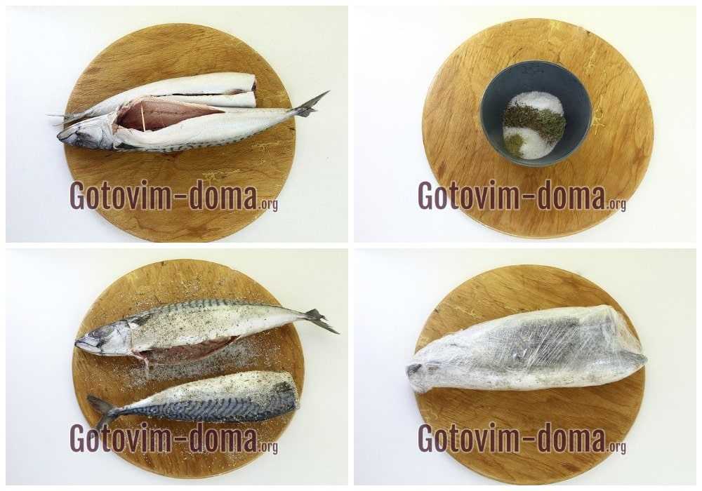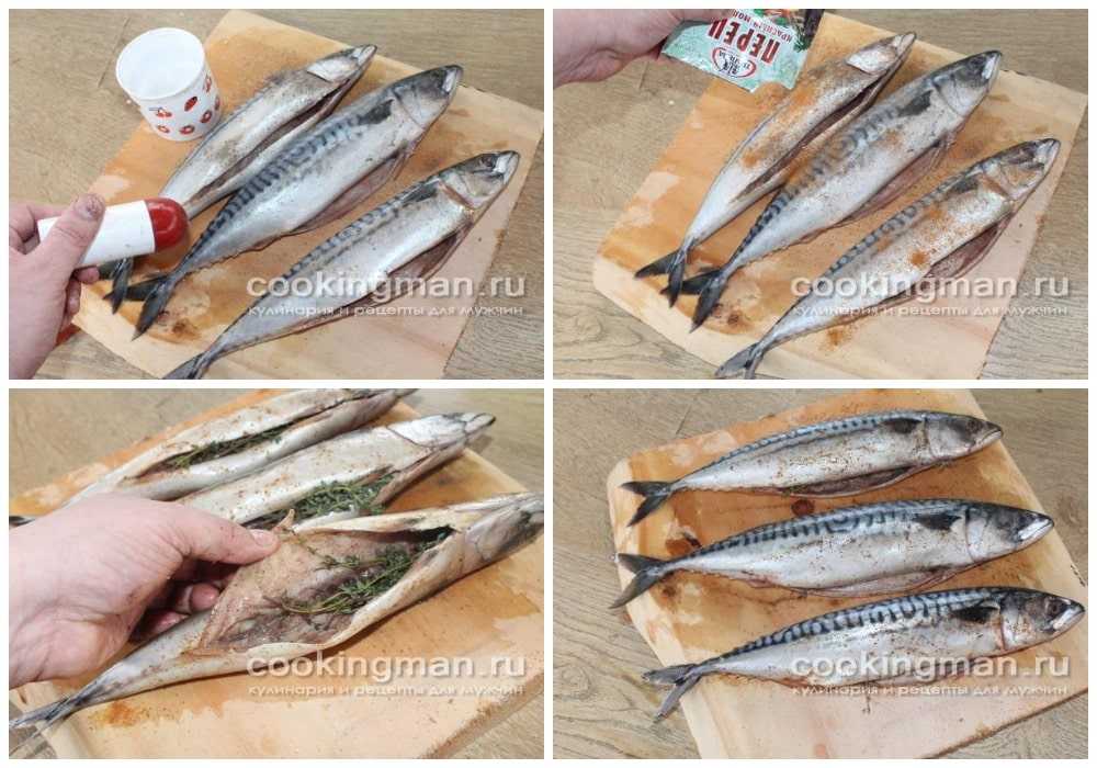- Натрите пряной смесью скумбрии изнутри и снаружи.