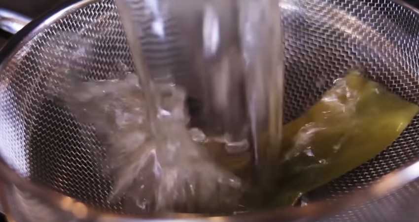 На огонь поставьте кастрюлю с водой, после кипения посолите, поместите рыбные обрезки (шкуру, хребет), сварите на них наваристый бульон. Для аромата можно кинуть лавровый лист и перец горошком, но потом их достать. Бульон варите 30 минут, после процедите, получая почти прозрачную жидкость.