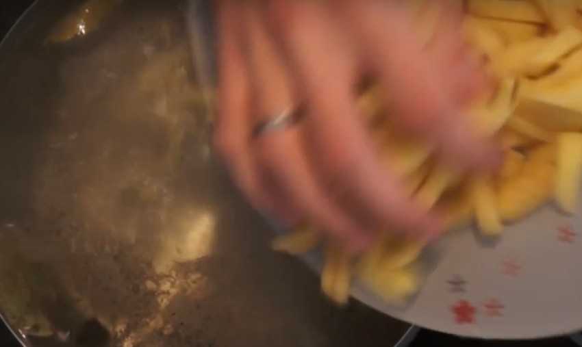 Затем положите в сковороду вымытые, но неочищенные целые зубочки чеснока.