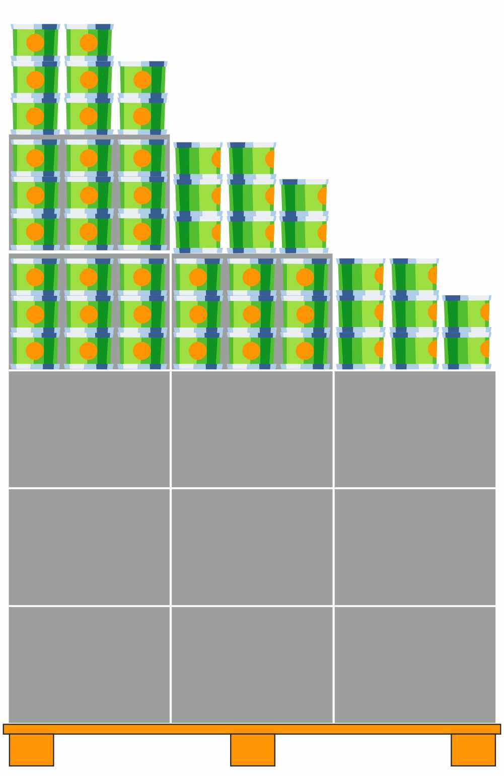 Полка должна быть полностью заполнена: от края до задней стенки. Если товара в данный момент недостаточно, нужно создать «зрительный объем»: сгруппировать товар у внешнего края полки в несколько рядов.