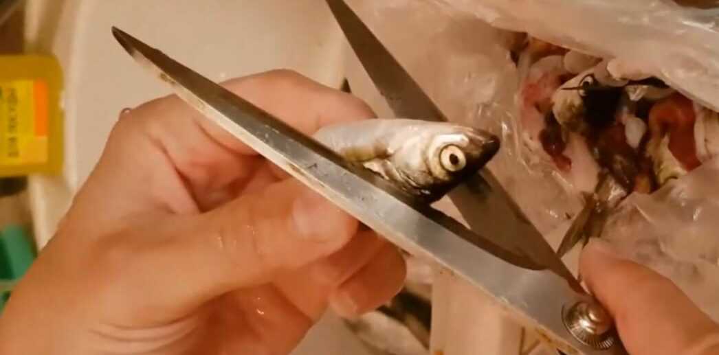 - Из рыбы удаляется все лишнее, отсекаются головы.