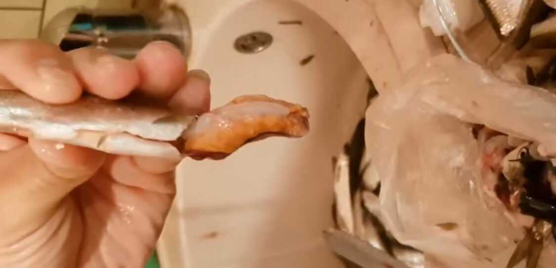 - Посыпать тушки крупной морской солью, перетереть в ладонях и тщательно промыть под сильным напором воды.