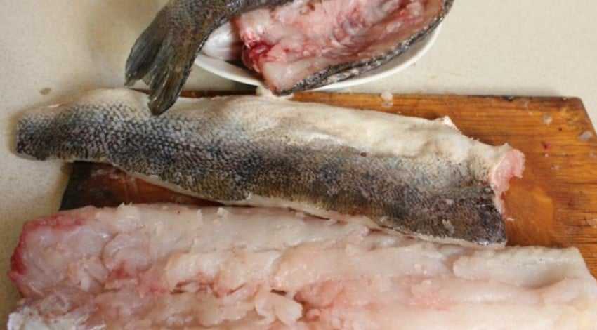 Всех предназначенных для филирования судачков хорошо чистим от чешуи, потрошим, промываем водой, после чего от головы рыбы, двигая ножом вдоль хребта к хвосту,