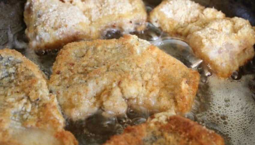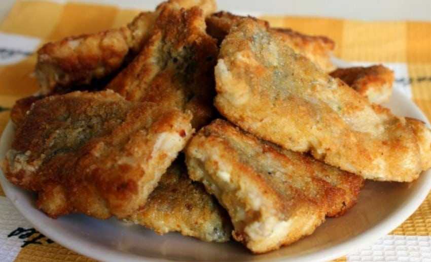 Филе судака, жареное в кляре из панировочных сухарей и яиц
