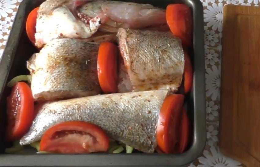 Очень вкусный судак, запеченный кусочками с овощами в молоке