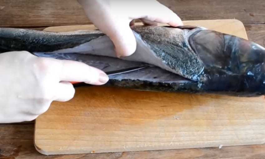 - Каким бы вкусным не был толстолобик, многие не употребляют его из-за наличия множества костей. По этой причине, если тушка готовится целой, на ее спине лучше всего сделать ножом большое количество надрезок, не перерубая хребет. В итоге все косточки станут измельченными. Крупные кости легко убираются.