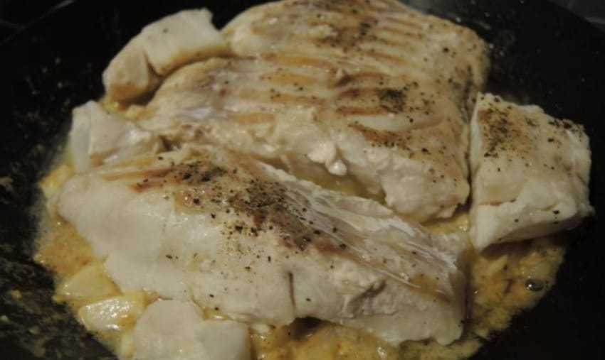 Этот вариант подойдёт любителями более выраженного вкуса. Отварная рыба под польским соусом получается невероятно мягкой и ароматной. А специи позволяют раскрыть её вкус с иной стороны. Особенно хорош ароматный бульон, которым пропитывается рыба.