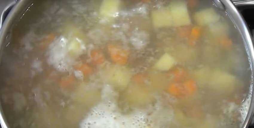 - Поставить кастрюлю на огонь, после закипания его убавить и варить 20 мин. В процессе снять с поверхности пену;