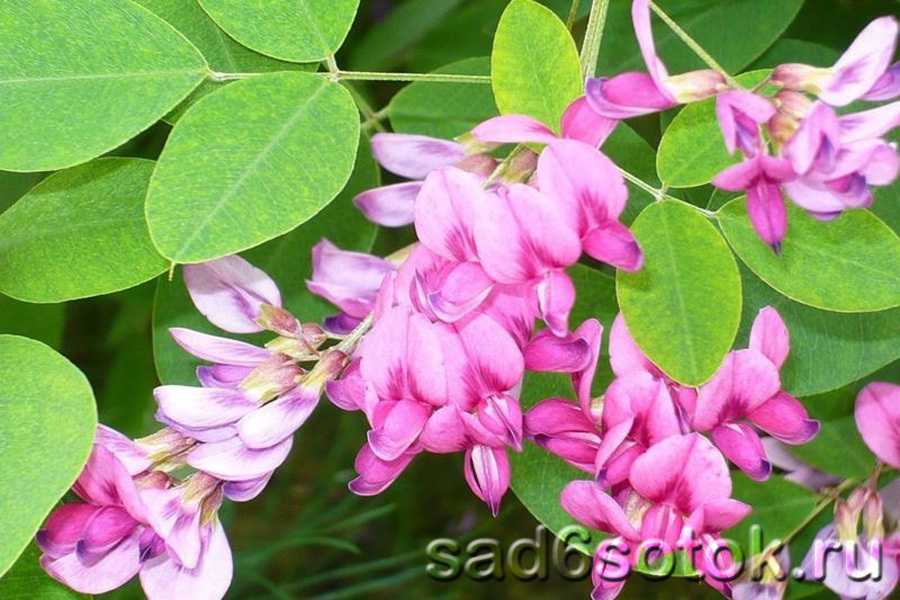 Леспедеца двуцветная (Lespedeza bicolor) – кустарник до 2,5 м высотой, с тонкой, плотной, черной корой с чечевичками на старых (10–12-летних) стволах. Ветви прутьевидные, до 2–3 см в диаметре у основания, вверх направленные. Концы ветвей ежегодно обмерзают даже на юге Приморья. Образует обильные корневые отпрыски. Доживает до 50–55 лет. Побеги ребристые, зеленые, слабо опушенные, годовалые – красно-бурые, голые. Листья тройчатые. Листочки эллиптические, на верхушке закругленные или с выемкой и с коротким тонким шипиком, 2–5 см длиной и 1,5–3 см шириной. Молодые – шелковисто опушенные, а позднее – почти голые.