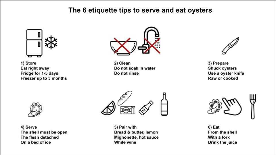 Устричный этикет — это свод правил, как правильно подавать и есть устрицы. Такие правила помогают избежать поведения, которое может вызвать неуважение к вашим хозяевам или гостям или заставить вас выглядеть невежливо.