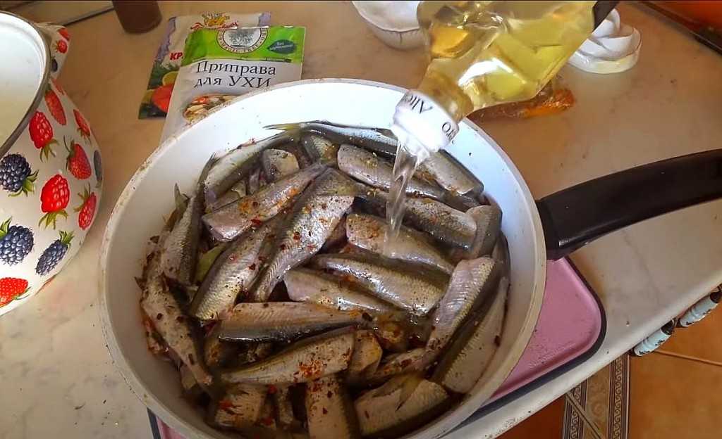 Β Β 3. Π ΡΠ±Π° ΡΠ»ΠΎΠΆΠ΅Π½Π° ΠΎΠ΄Π½Π° ΠΊ ΠΎΠ΄Π½ΠΎΠΉ ΠΈ ΡΠ΅ΠΏΠ΅ΡΡ Π·Π°Π»ΠΈΠ²Π°ΠΌ Π΅Ρ ΡΠ°ΡΡΠΈΡΠ΅Π»ΡΠ½ΡΠΌ ΠΌΠ°ΡΠ»ΠΎΠΌ. ΠΠ°ΡΠ»ΠΎ Π΄ΠΎΠ»ΠΆΠ½ΠΎ ΡΠΊΡΡΠ²Π°ΡΡ Π²Π΅ΡΡ Π½ΠΈΠΉ ΡΠ»ΠΎΠΉ ΡΡΠ±Ρ.