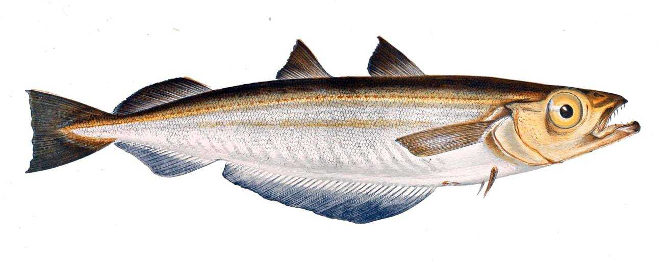 Живет в Ледовитом океане. Цветом пикша серебристого, а сбоку линия черного цвета. Длина тела – 70 сантиметров. Растет с помощью употребления в пищу червей и икры от сельди. Первый нерест несет уже в 3 года. Ежегодно улов составляет практически миллион штук.