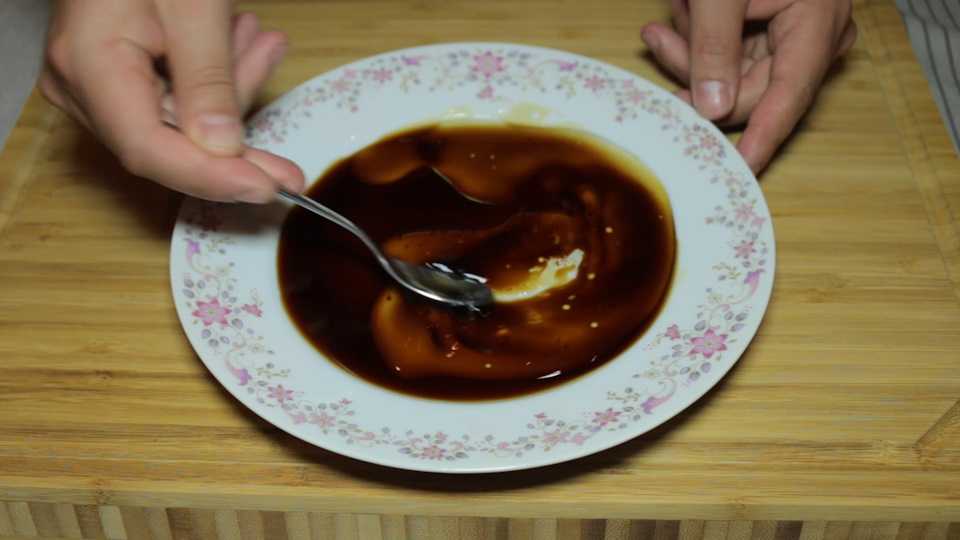 Делаем простейший маринад для тунца. Для этого смешиваем в пропорции 1 к 2 растительное масло и соевый соус. Я использовал 4 ст.л. соевого соуса и 2 ст.л. растительного масла. Перемешиваем маринад.