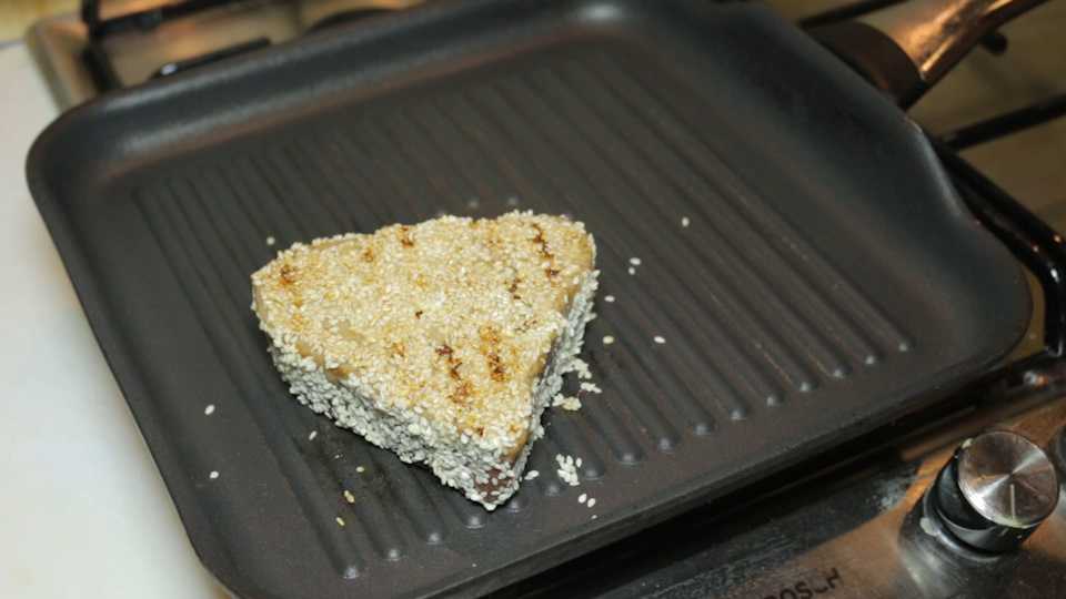 Как пожарить стейк тунца на сковороде, чтоб он был сочным и мягким?